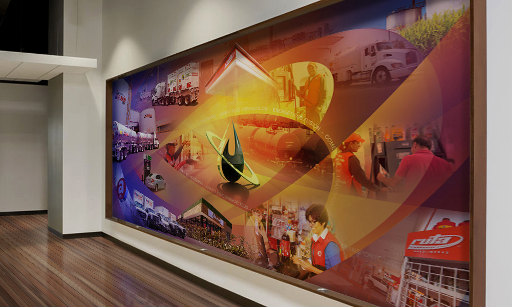 Diseño de Collage corporativo para impresión de mural en recepción.